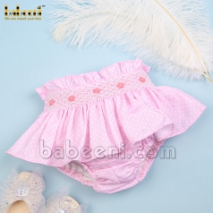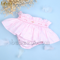 Hand smock pink with white dot diaper for baby girl - DR 3312