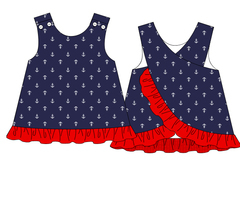 Pretty sailboat printed plain dress for baby girls - DR 2812