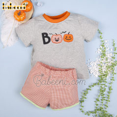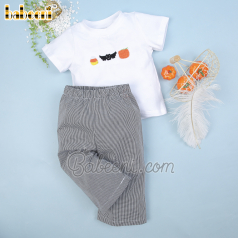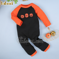 Pumpkin French knot embroidery boy bubble – BC 1042