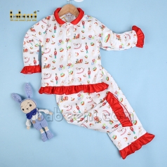 Lovely silk satin pajama for little girls with toys printed on fabric - PJ 50