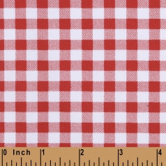 K310- red, green gingham printed knit (95% cotton; 5% spandex).