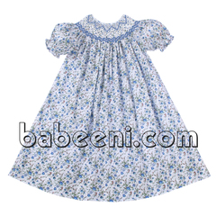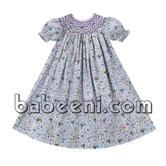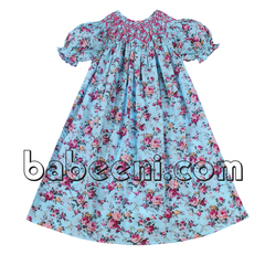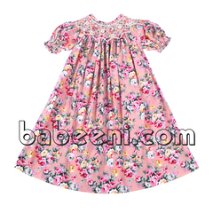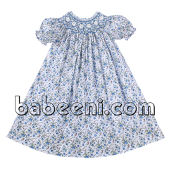 Adorable baby girl tiny flowers smocked bishop dress - DR 3066