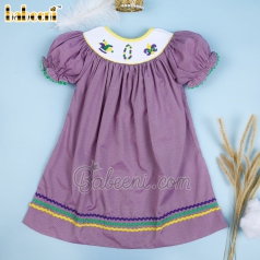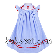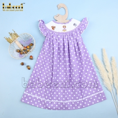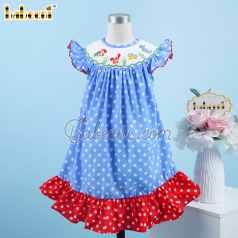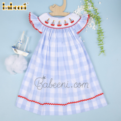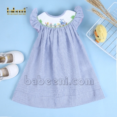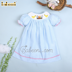 Easter train embroidery dark blue stripe girl dress - DR 3338