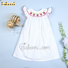 Cute smocked strawberry mint dotted baby dress – DR 3426