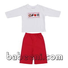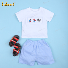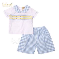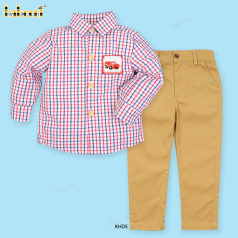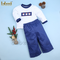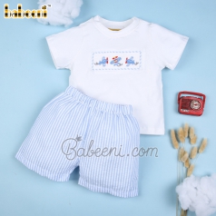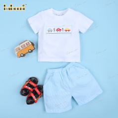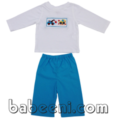2 Piece Set Car Hand Smocked Blue Bottom For Boy - BC1115