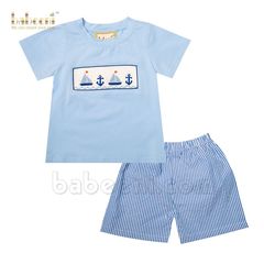 Boat and Anchor Aqua Printed Stripe outfit for Little Boy – BC 891