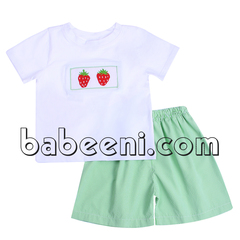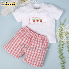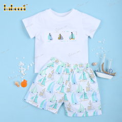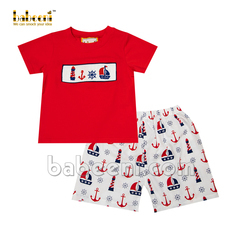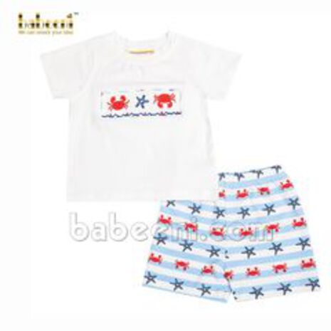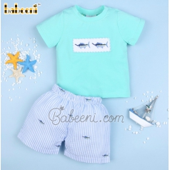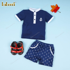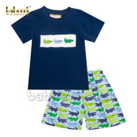 Lovely smocked crocodile boy set navy top printed shorts - BC 921