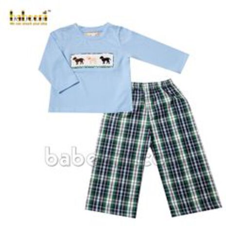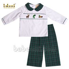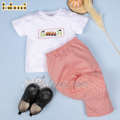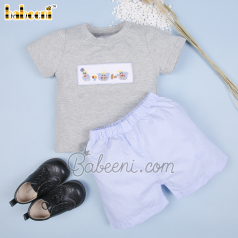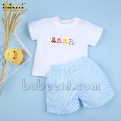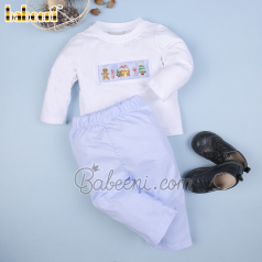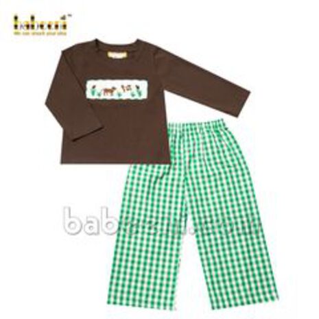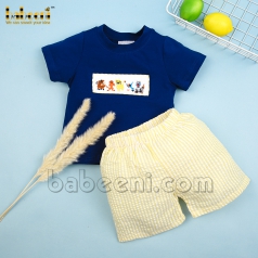 Adorable cartoon animals hand smocked boy clothing - BC 961