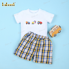 Crochet Embroidery 2 Piece Trucks Caro Short For Boy - BC1102