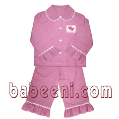 Girls pajamas with cute hearts smocked pattern - PJ 022