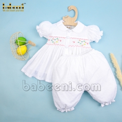 Swiss dot geometric smocking pajama for little girls - PJ 043