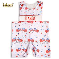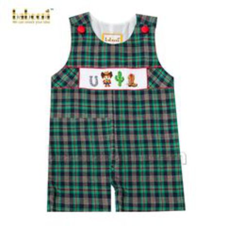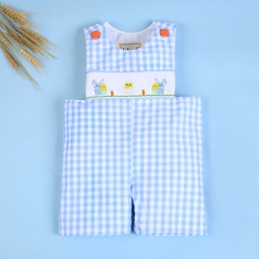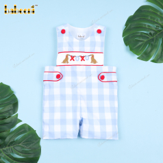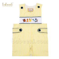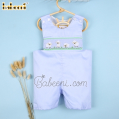 White sheep hand-smocked shortalls for little boys - BC 895