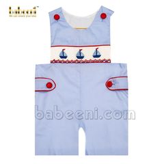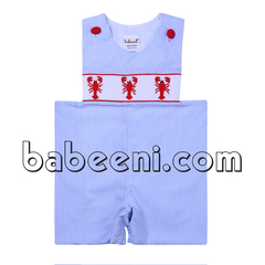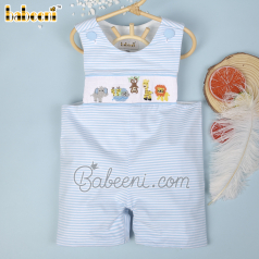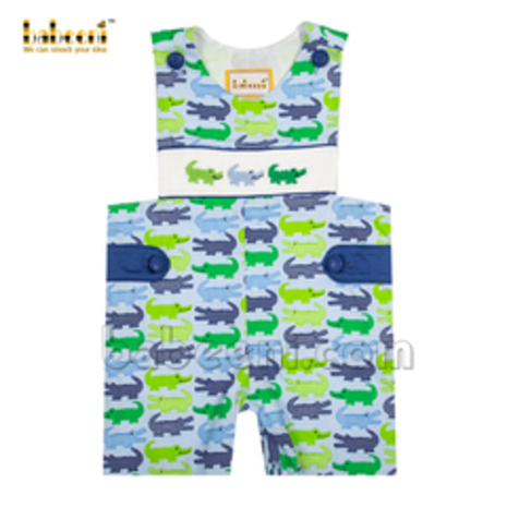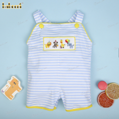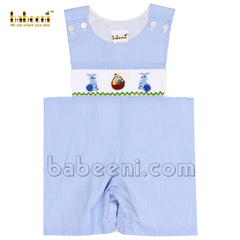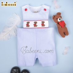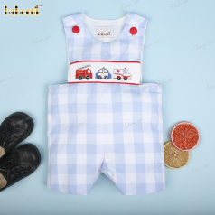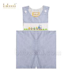Blue train hand-smocked shortalls for little boys - BC 894